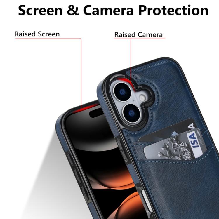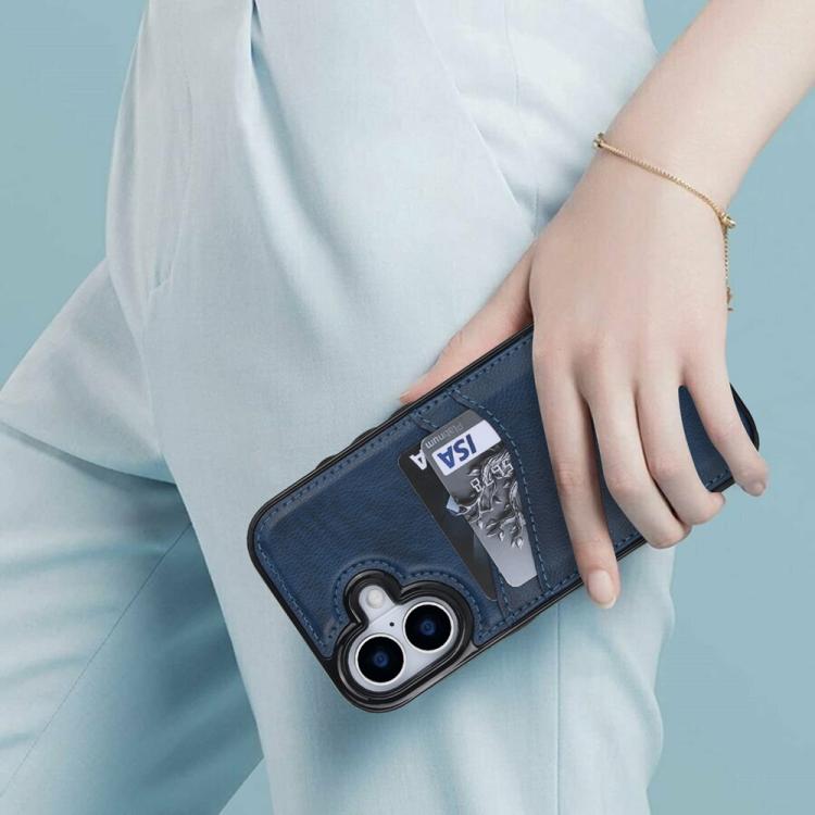 Funda de piel de lichi con ranuras para tarjetas para iPhone 17 (azul)