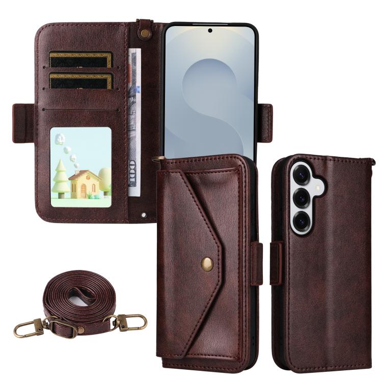 Funda de piel de vacuno cruzada con ranuras para múltiples tarjetas para Samsung Galaxy S25 5G (marrón)