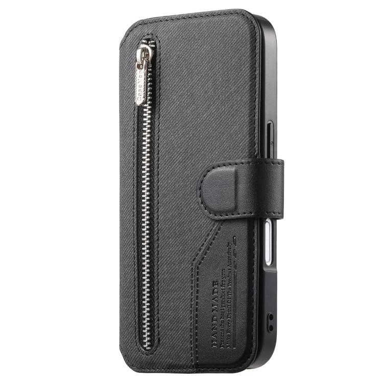 Funda de piel para iPhone 17 Pro, de tela de sarga, con MagSafe, RFID, antirrobo y cremallera (negra).