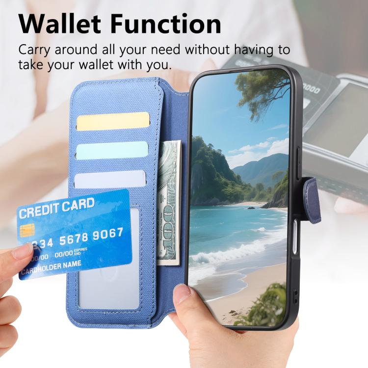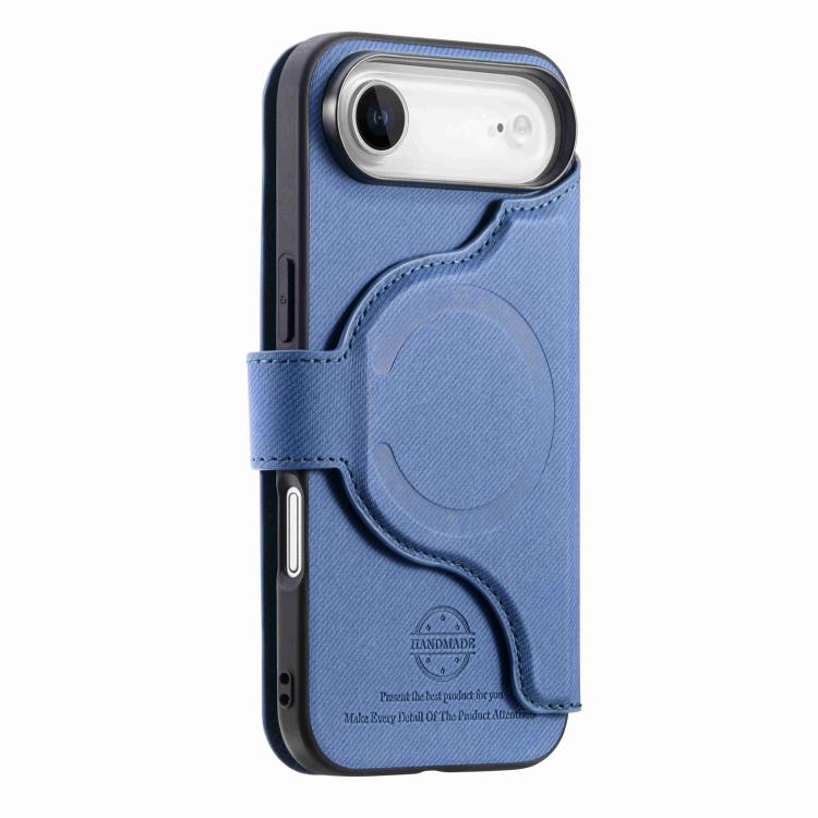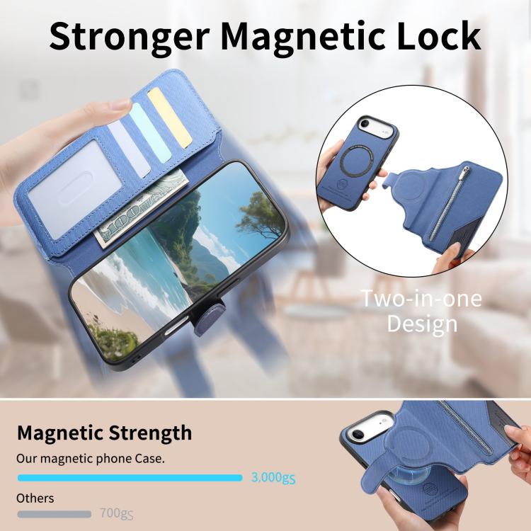 Funda de piel para iPhone Air con cremallera, MagSafe, RFID y protección antirrobo (azul oscuro).