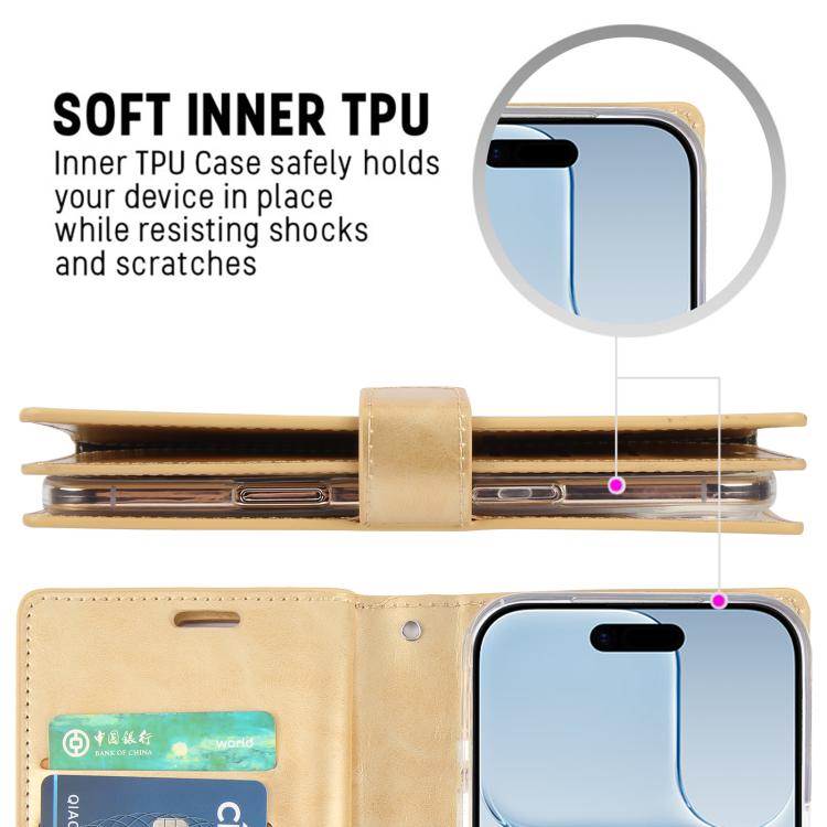 Funda de piel para iPhone Air GOOSPERY MANSOOR DIARY con 9 ranuras para tarjetas (dorada)