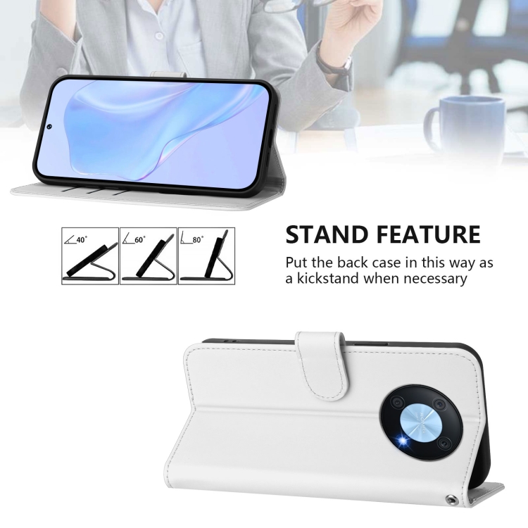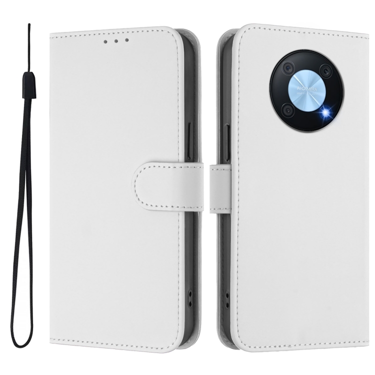 Funda de Piel Sintética con Cordón para Huawei Enjoy 50 Pro 4G y Nova Y90 (Blanco)