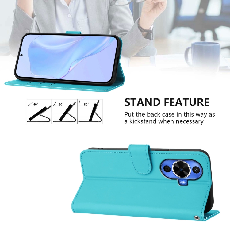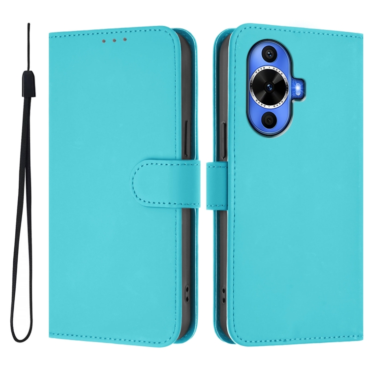 Funda de Piel Sintética con Cordón para Huawei Nova 12S 4G con Tacto de Piel (Azul Lago)