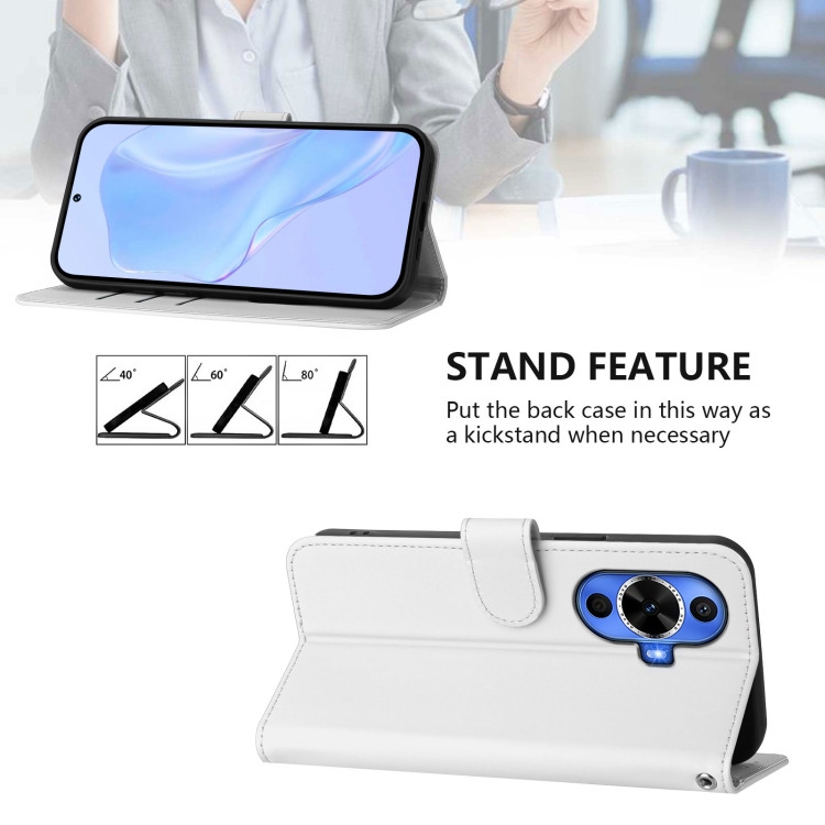 Funda de Piel Sintética con Cordón para Huawei Nova 12S 4G con Tacto de Piel (Blanco)