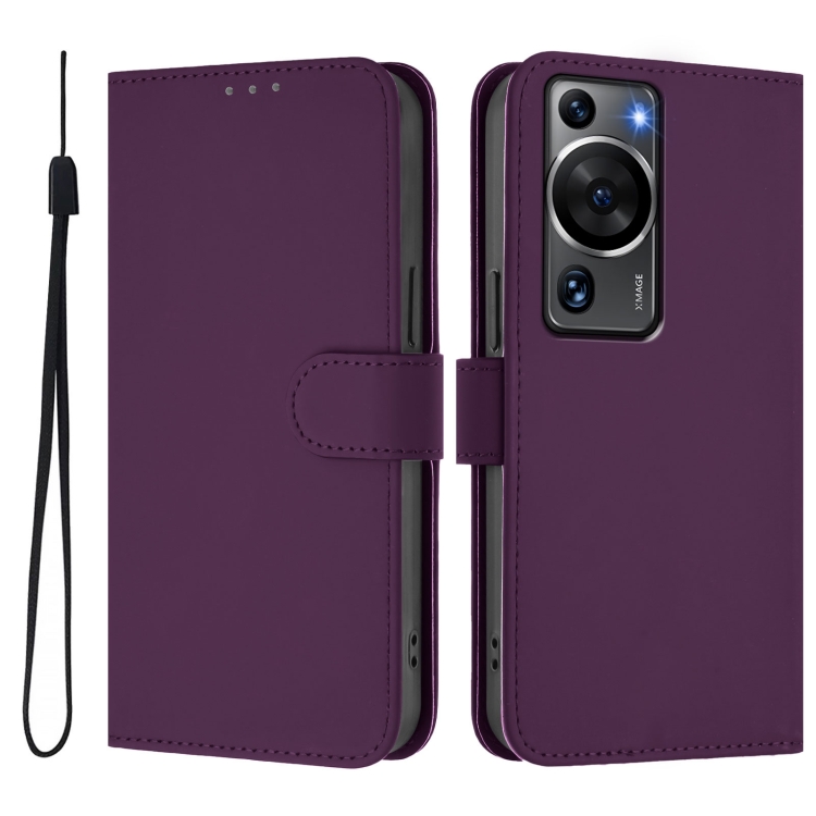 Funda de Piel Sintética con Cordón para Huawei P60/P60 Pro con Tacto de Piel (Violeta)