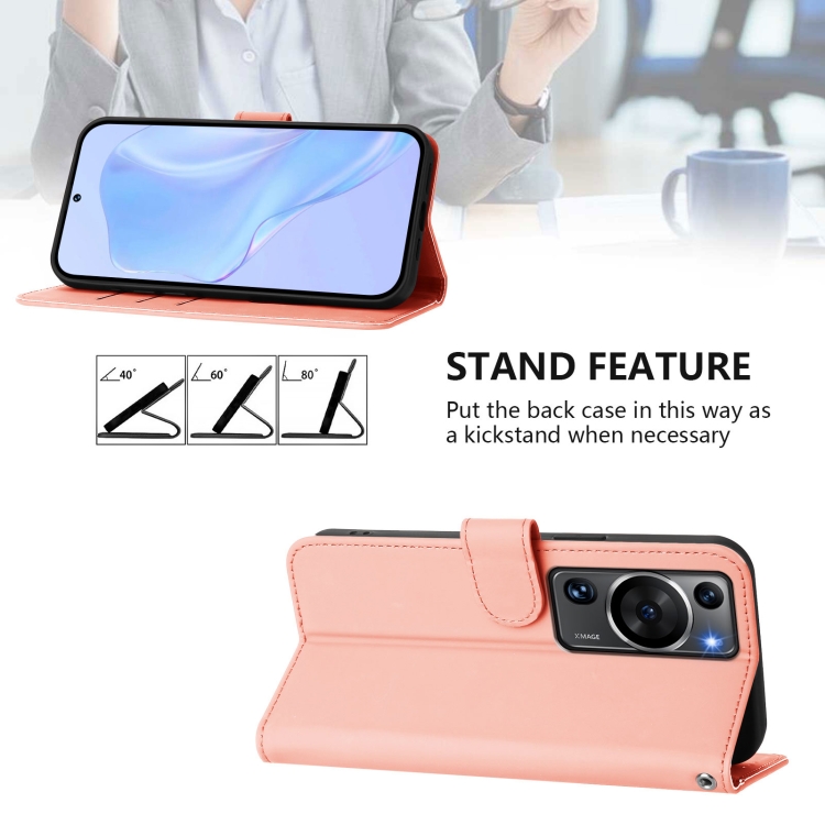 Funda de Piel Sintética con Cordón para Huawei P60/P60 Pro (Rosa)