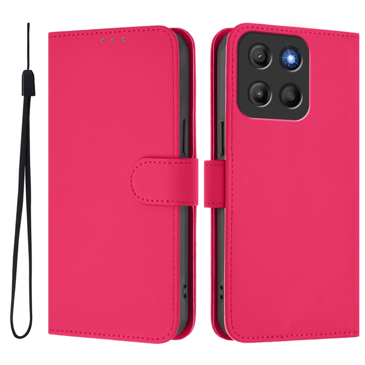 Funda de Piel Sintética con Cordón para Motorola Moto G15 (Rosa y Rojo)