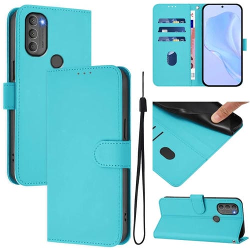 Funda de Piel Sintética con Cordón para Motorola Moto G71 5G (Azul Lago)