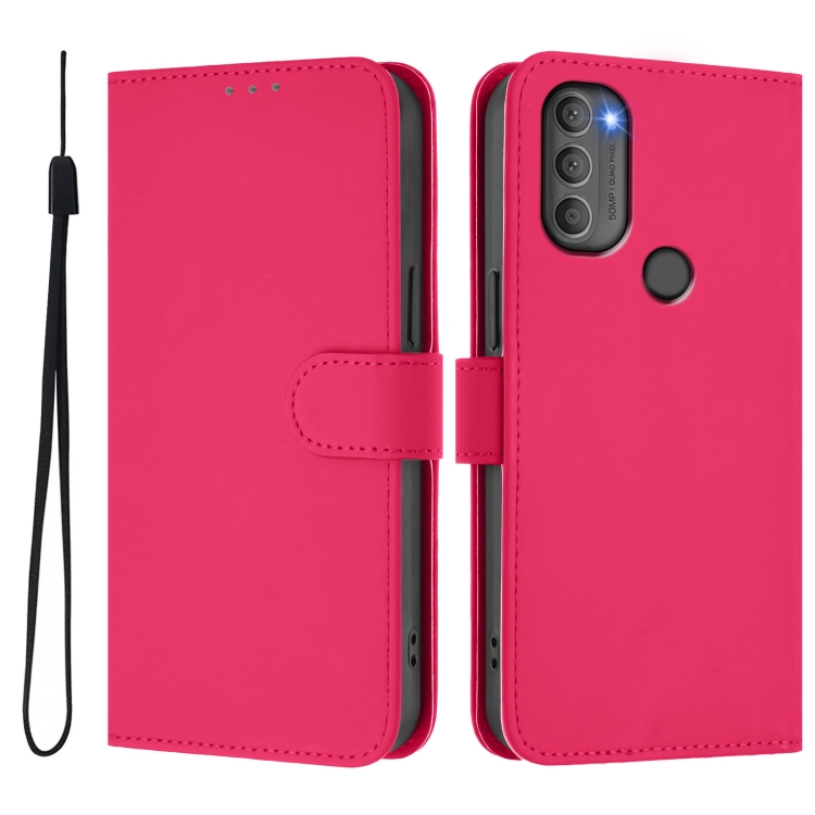 Funda de Piel Sintética con Cordón para Motorola Moto G71 5G (Rosa y Rojo)