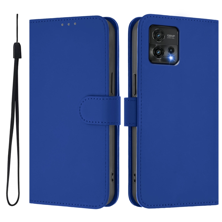 Funda de Piel Sintética con Cordón para Motorola Moto G72 (Azul Oscuro)