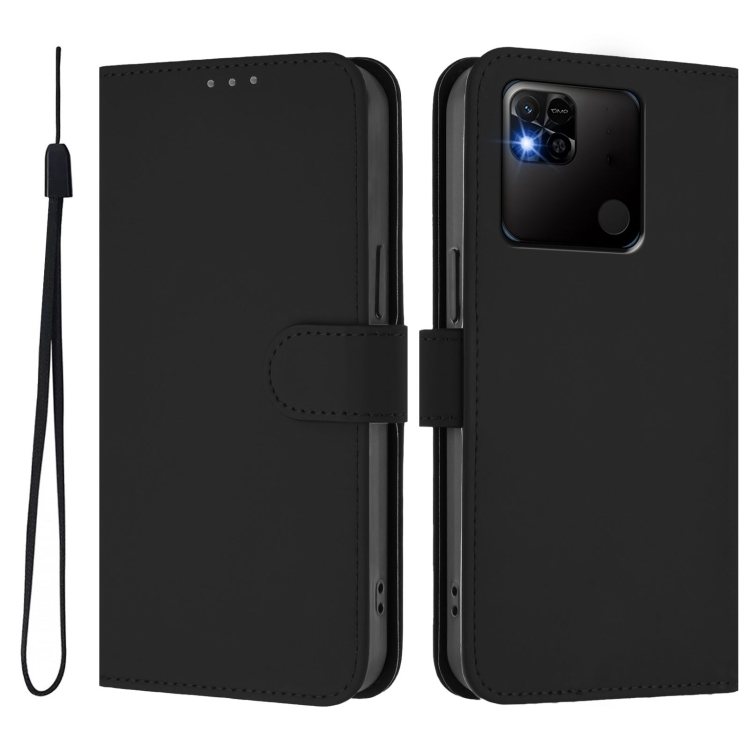 Funda de Piel Sintética con Cordón para Redmi 10A (Color Sólido) (Negro)