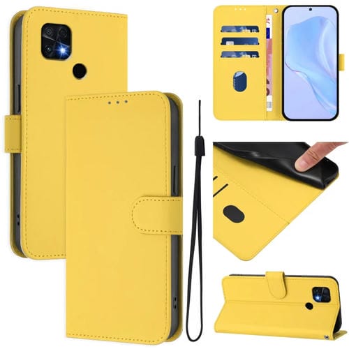 Funda de Piel Sintética con Cordón para Redmi 10C (Amarillo Limón)