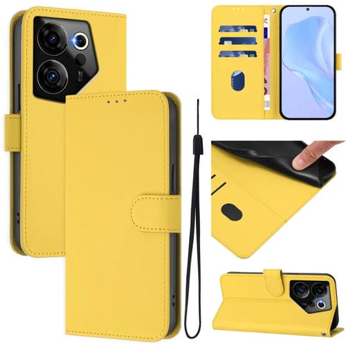 Funda de Piel con Textura y Cordón para Tecno Camon 20 Premier 5G (Amarillo Limón)