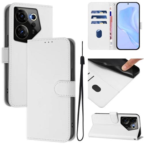 Funda de Piel Sintética con Cordón para Tecno Camon 20 Premier 5G (Blanco)