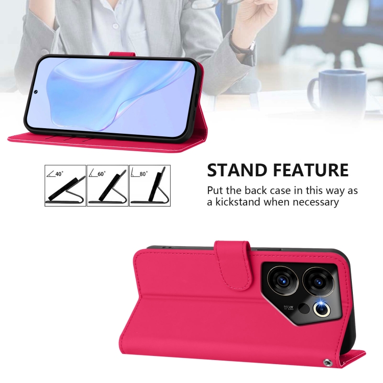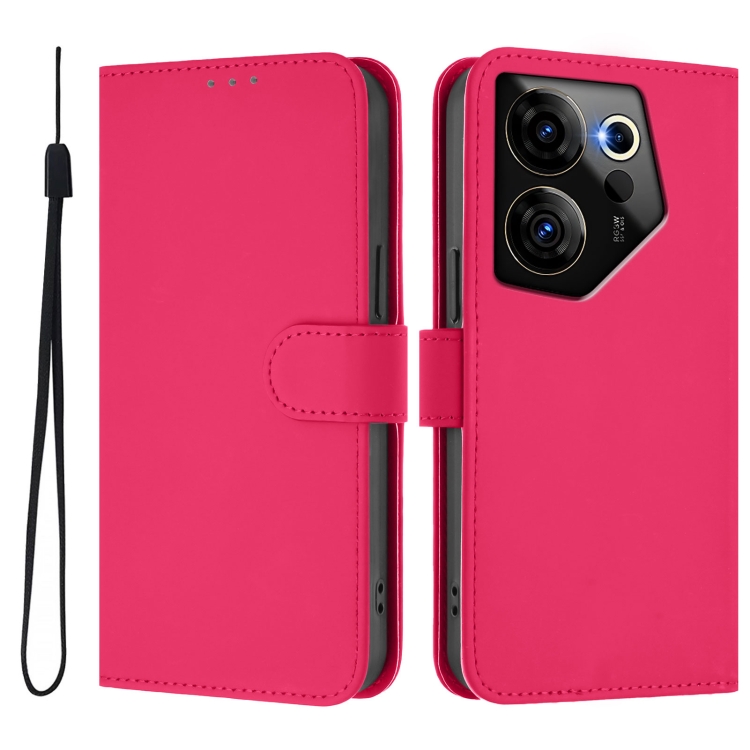 Funda de Piel para Tecno Camon 20 Premier 5G con Textura Liso y Cordón (Rojo Rosa)