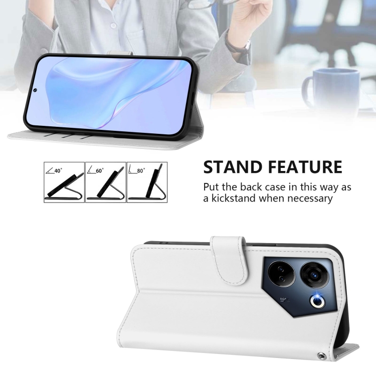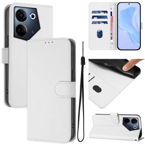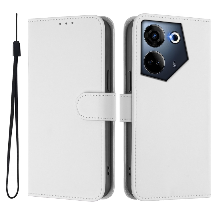 Funda de Piel Sintética con Cordón para Tecno Camon 20 Pro 4G (Blanco)