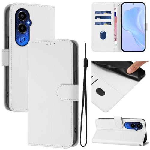 Funda de Piel Sintética con Cordón para Tecno Pova 4 Pro (Blanco)