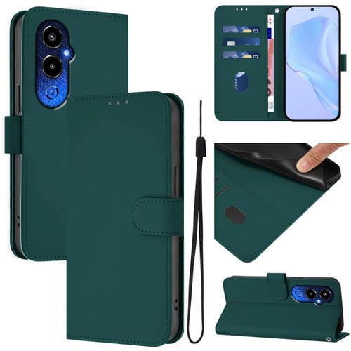 Funda de Piel con Cordón para Tecno Pova 4 Pro (Verde Oscuro)