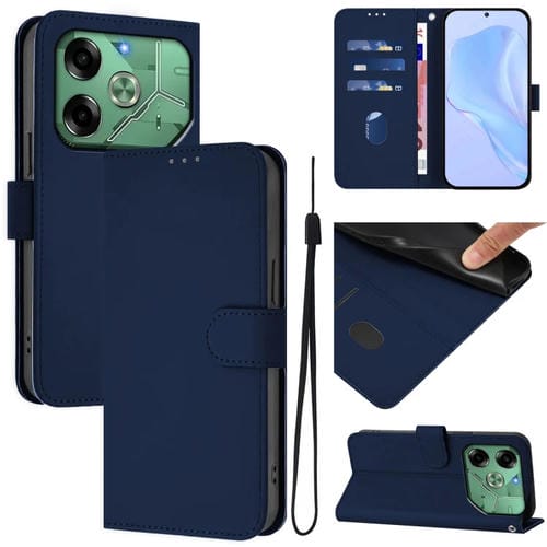Funda de Piel para Tecno Pova 6 4G con Textura y Cordón (Azul Marino)