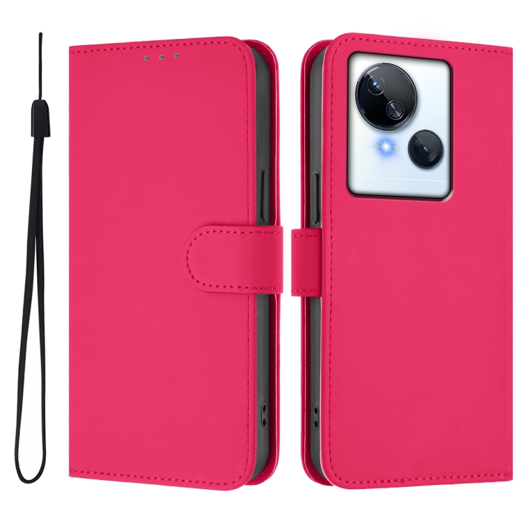 Funda de Piel para Tecno Spark 10 5G con Textura Lisa y Cordón (Rosa)