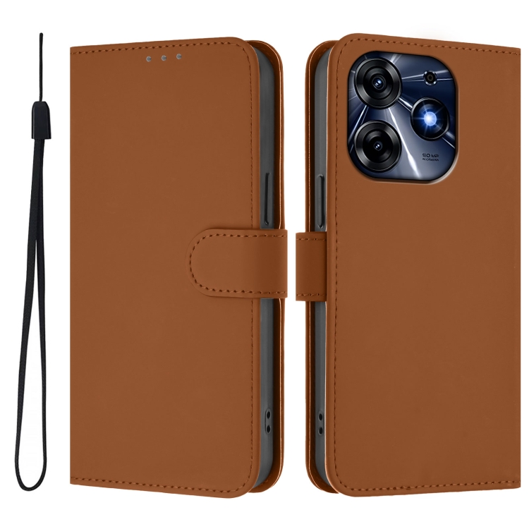 Funda de Cuero con Textura de Piel y Cordón para Tecno Spark 10 Pro 4G (Marrón)