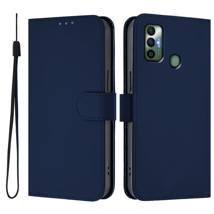 Funda de Piel para Tecno Spark 7/7T con Textura y Cordón (Azul Marino)