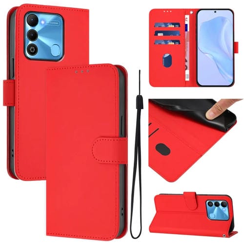 Funda de Piel Sintética con Cordón para Tecno Spark Go 2022/8C (Rojo)