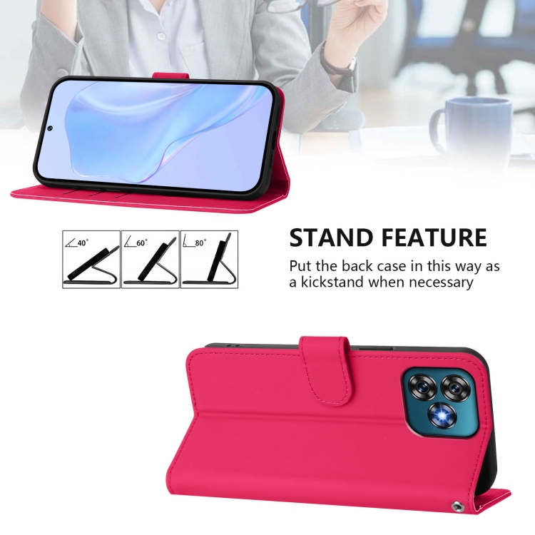 Funda de Piel Sintética con Cordón para Teléfono Oukitel C53 (Rosa y Rojo)