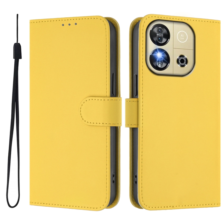 Funda de Piel Sintética con Cordón para Teléfono Oukitel C57S (Amarillo Limón)