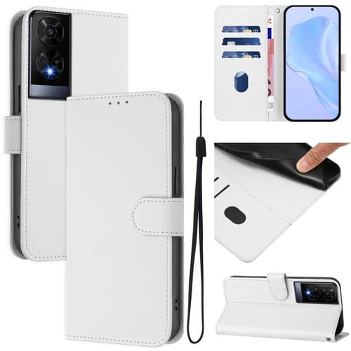 Funda de Piel Sintética con Cordón para TCL 50 Xe con Tacto de Piel (Blanco)