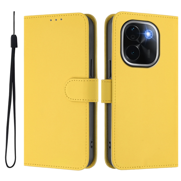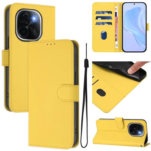 Funda de Piel Sintética con Cordón para Teléfono Vivo Iqoo Z9S Pro 5G, Color Sólido, con Tacto de Piel de la India (Amarillo Limón)