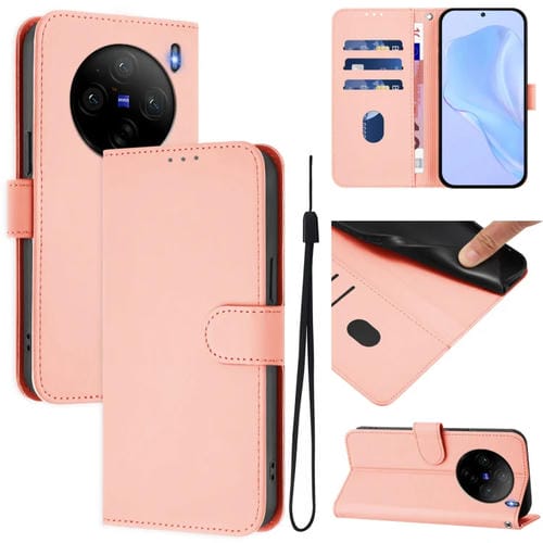Funda de Piel Sintética con Cordón para Teléfono Vivo X100S 5G (Rosa)