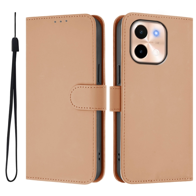 Funda de Piel Sintética con Cordón para Teléfono Vivo Y28 4G, Color Piel