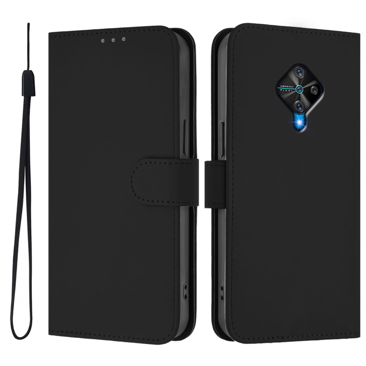 Funda de Piel Sintética con Cordón para Teléfono Vivo Y53S 4G/Y51A 2021 (Color Negro)