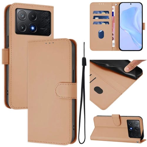Funda de Piel Sintética con Cordón para Teléfono Xiaomi Poco X6 Pro (Color Piel)