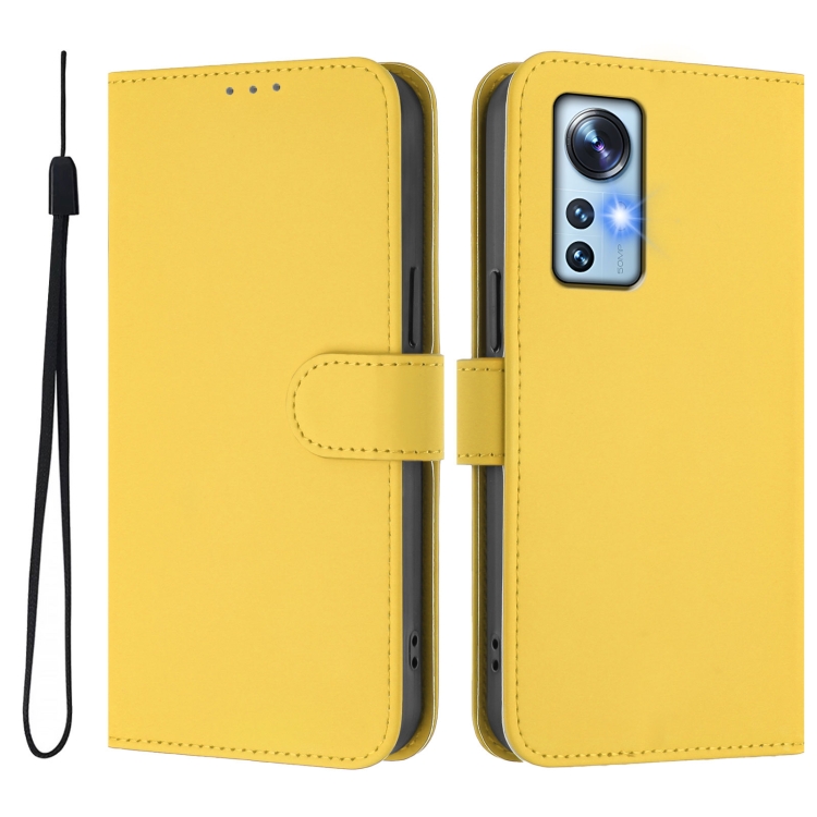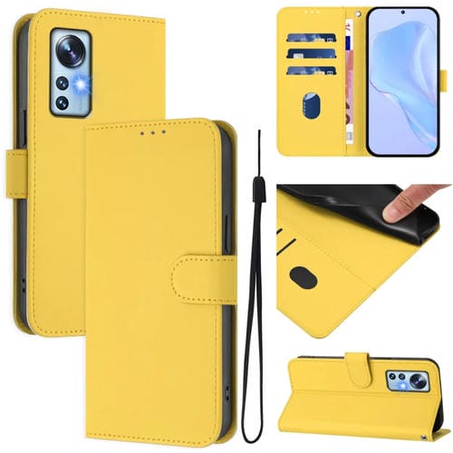 Funda de Piel Sintética con Cordón para Xiaomi 12 5G/12S 5G/12X 5G (Amarillo Limón)