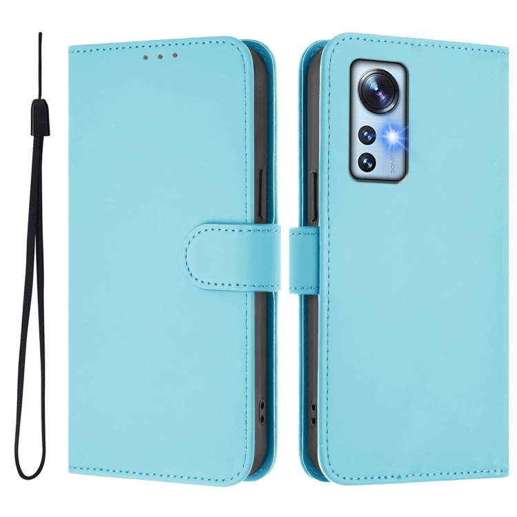 Funda de Piel Sintética con Cordón para Xiaomi 12 5G/12S 5G/12X 5G (Azul Cielo)