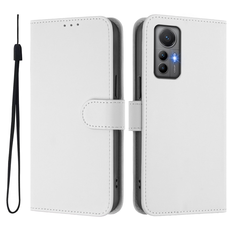 Funda de Piel Sintética con Cordón para Xiaomi 12 Lite, Color Sólido, con Tacto de Piel (Blanco)
