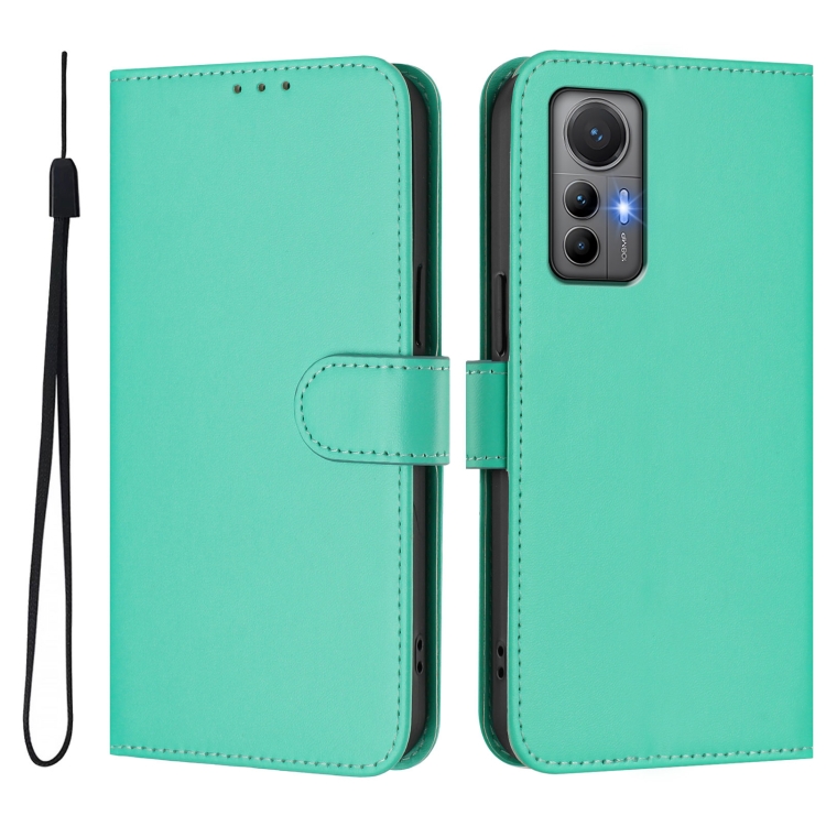 Funda de Piel Sintética con Cordón para Xiaomi 12 Lite, Color Sólido, con Tacto de Piel (Verde)
