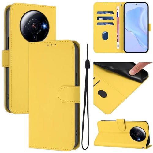 Funda de Piel Sintética con Cordón para Xiaomi 12S Ultra Skin Feel de Color Liso (Amarillo Limón)