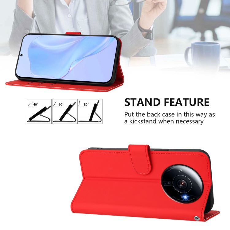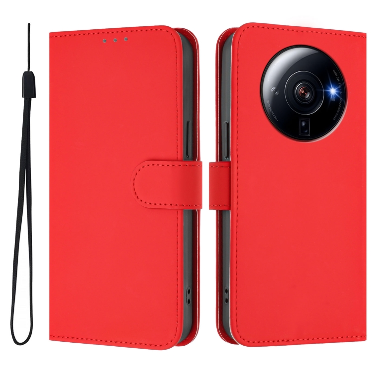 Funda de Piel Sintética con Cordón para Xiaomi 12S Ultra Skin Feel de Color Liso (Rojo)