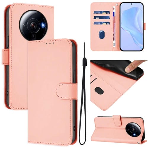 Funda de Piel Sintética con Cordón para Xiaomi 12S Ultra Skin Feel de Color Liso (Rosa)