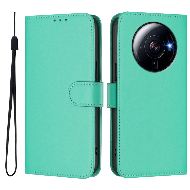Funda de Piel Sintética con Cordón para Xiaomi 12S Ultra Skin Feel de Color Liso (Verde)