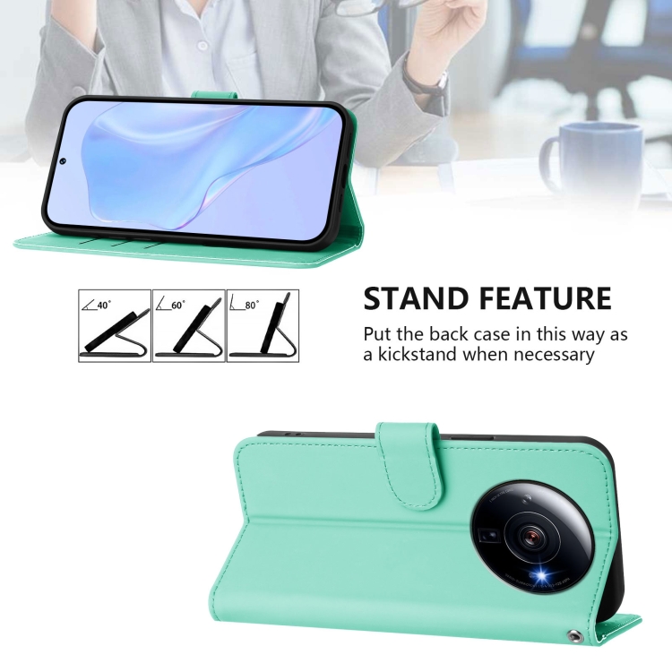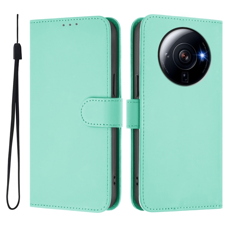 Funda de Piel Sintética con Cordón para Xiaomi 12S Ultra Skin Feel de Color Liso (Verde Menta)