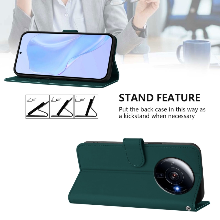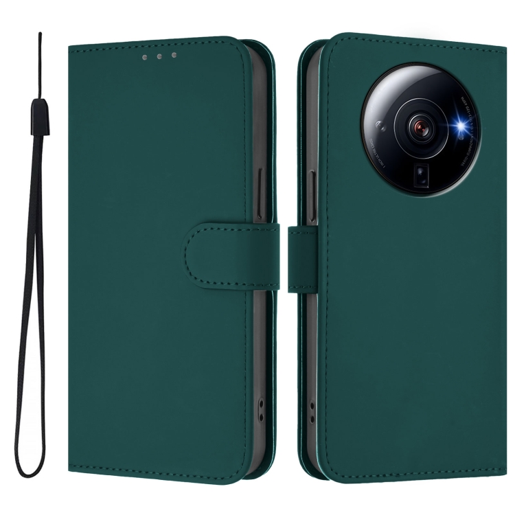 Funda de Piel Sintética con Cordón para Xiaomi 12S Ultra Skin Feel de Color Liso (Verde Oscuro)