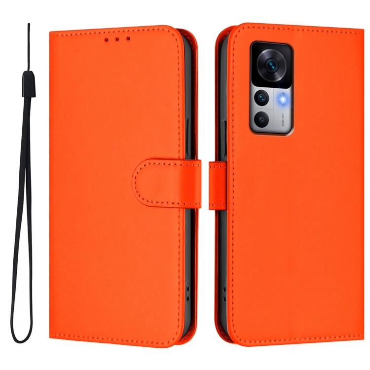 Funda de Piel Sintética con Cordón para Xiaomi 12T/12T Pro, Color Liso, con Tacto de Piel (Naranja)