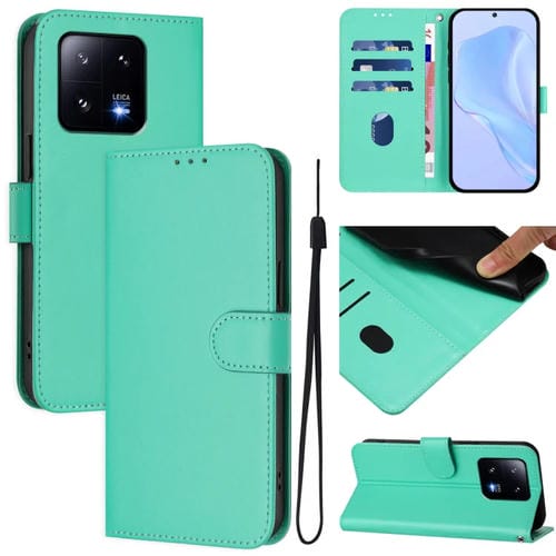 Funda de Piel Sintética con Cordón para Xiaomi 13 Pro 5G, Color Sólido, con Tacto de Piel (Verde)