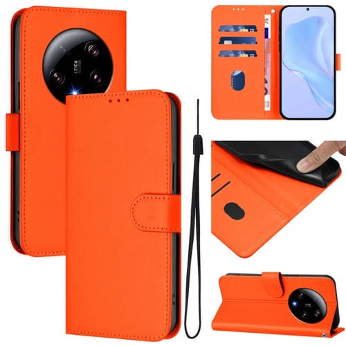 Funda de Piel Sintética con Cordón para Xiaomi 13 Ultra Skin Feel de Color Liso (Naranja)