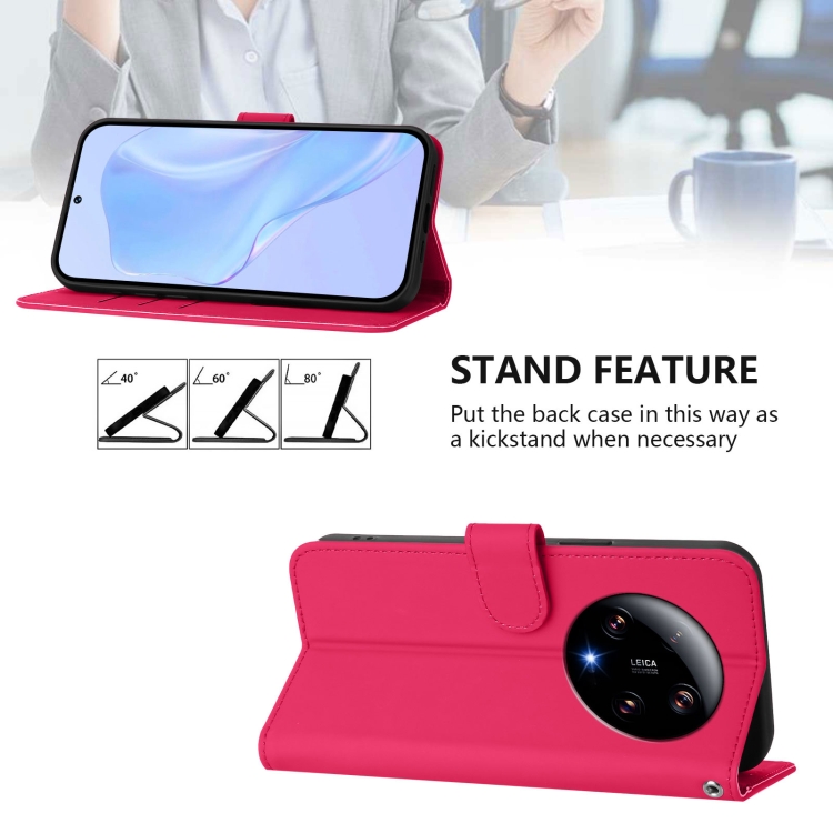 Funda de Piel Sintética con Cordón para Xiaomi 13 Ultra Skin Feel de Color Sólido (Rosa Rojo)