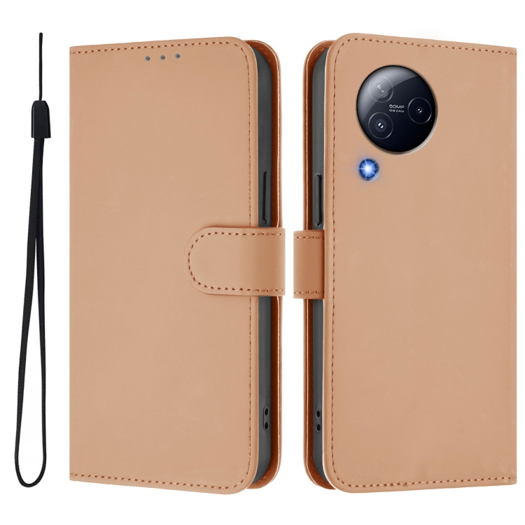 Funda de Piel Sintética con Cordón para Xiaomi Civi 3 5G, Color Liso, con Tacto de Piel (Desnudo)